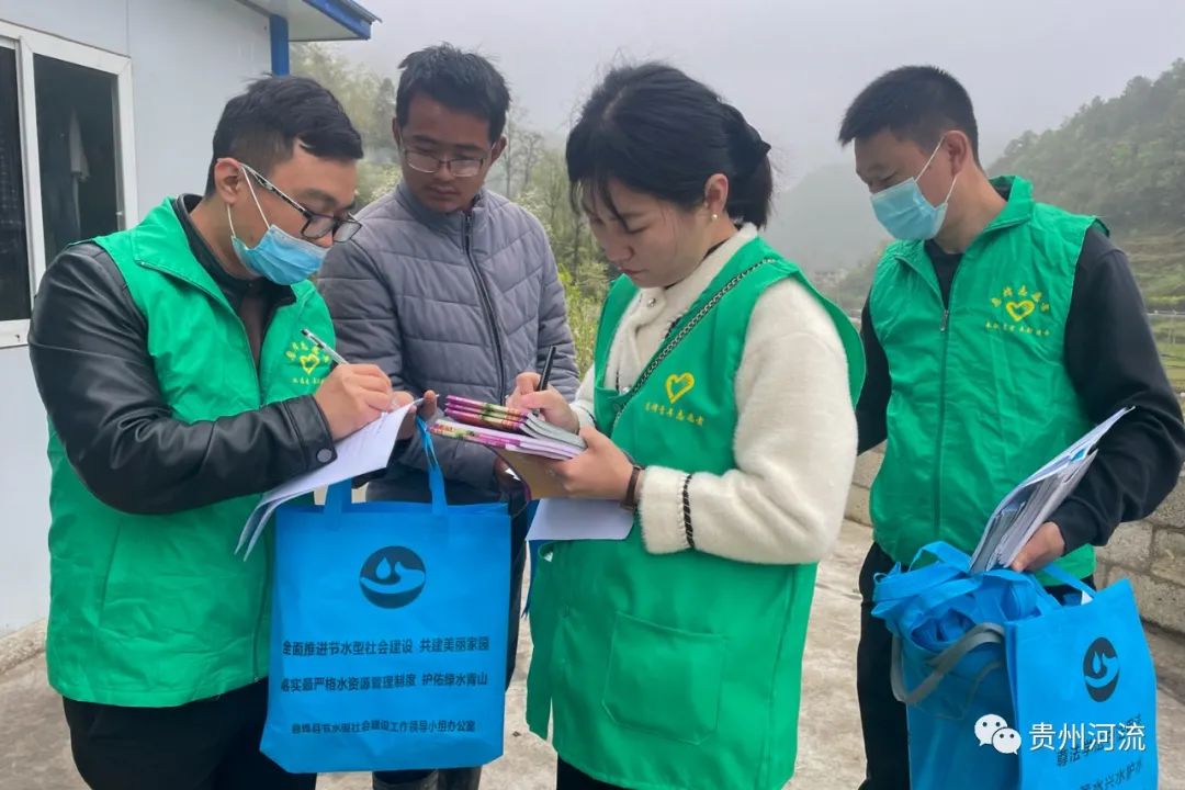 活动中,参与人员实地查看了息烽河难冲桥段水质、水环境治理、河湖“清四乱”等情况,在息烽河沿线开展了垃圾清理活动。随后,参与人员分为两组,分别对息烽河源头河道两旁的两个村民组进行了入户宣传,通过发放宣传资料、现场讲解、填写调查表等方式,向村民们宣传《长江保护法》、《地下水管理条例》、《贵州省河道条例》等相关法律法规,科普日常节水知识,讲解水源保护和节约用水的重要性。