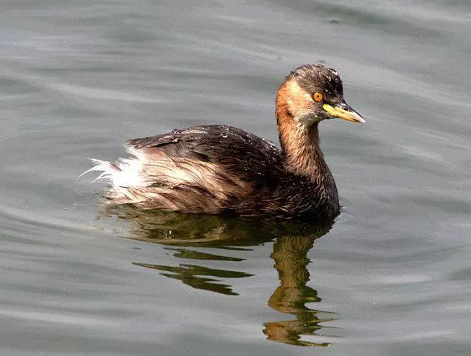 小䴙䴘是一种潜鸟。体长25-29厘米,翼展40-45厘米,体重100-200克,寿命13年。枕部具有黑褐色羽冠;成鸟上颈部具有黑褐色杂棕色的皱领;上体黑褐,下体白色。善于游泳和潜水,常潜水取食,以水生昆虫及其幼虫、鱼、虾等为食。通常单独或成分散小群活动。