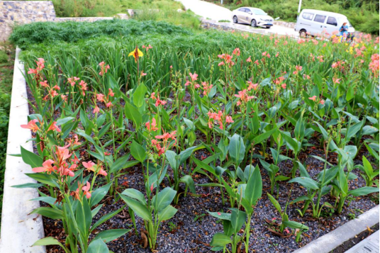 “好漂亮啊!”在息烽县青山苗族乡绿化村中寨组,记者远远看到一处种满了水仙、美人蕉和菖蒲的地方,乍一看,像个大花圃。可走近一瞧,才知道这是一个专门用来处理农村生活污水的人工湿地。