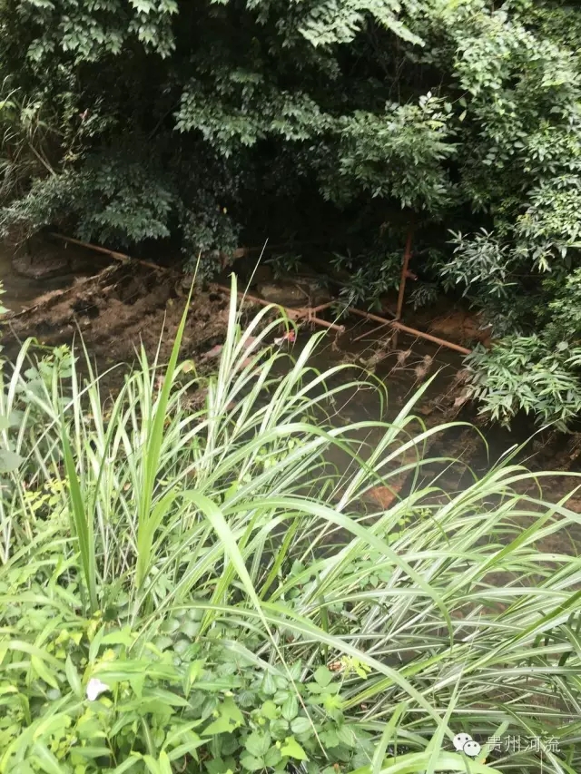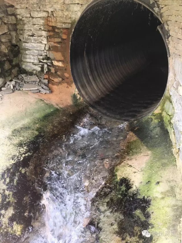 怀着好奇心,大家走到河对岸,于是就清晰看到有水从黑色的水管里流出,但是无法靠近,也无法判断流出的是什么水。