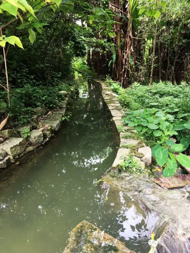 沿着河流逆流而上,走过水上戏台,就来到了一处泉水边。戏台的水便是从这里引过去的。